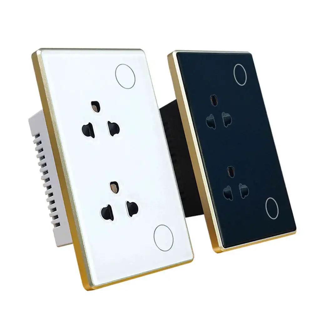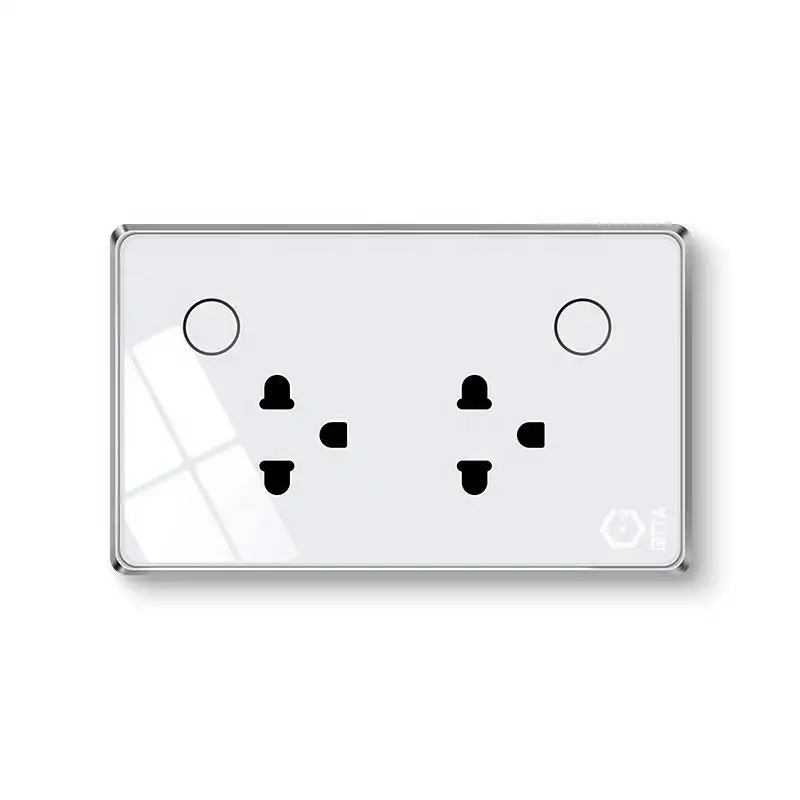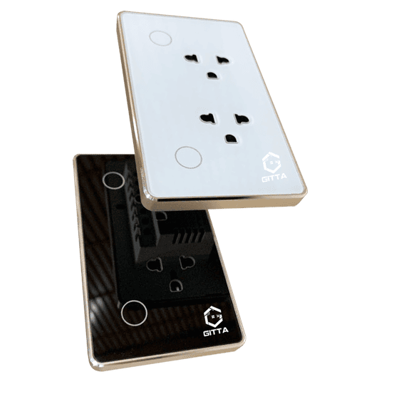 Ổ cắm âm tường thông minh Gitta sử dụng kết nối Zigbee thế hệ mới, viền nhôm sang trọng, mặt kính cường lực chống xước, mang lại vẻ hiện đại cho không gian sống.