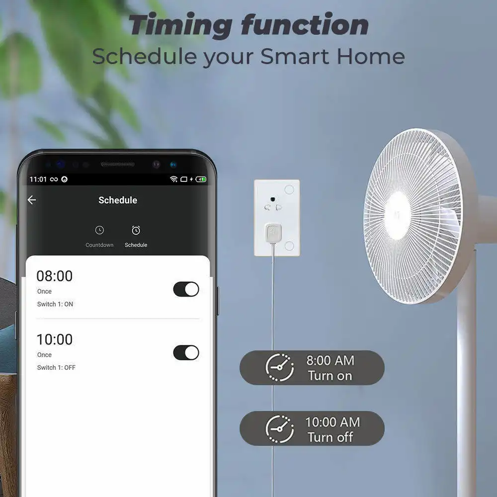 - Người dùng có thể thiết lập lịch trình bật/tắt thiết bị theo thời gian hoặc ánh sáng môi trường, phối hợp ngữ cảnh với các thiết bị khác trong hệ sinh thái Tuya.