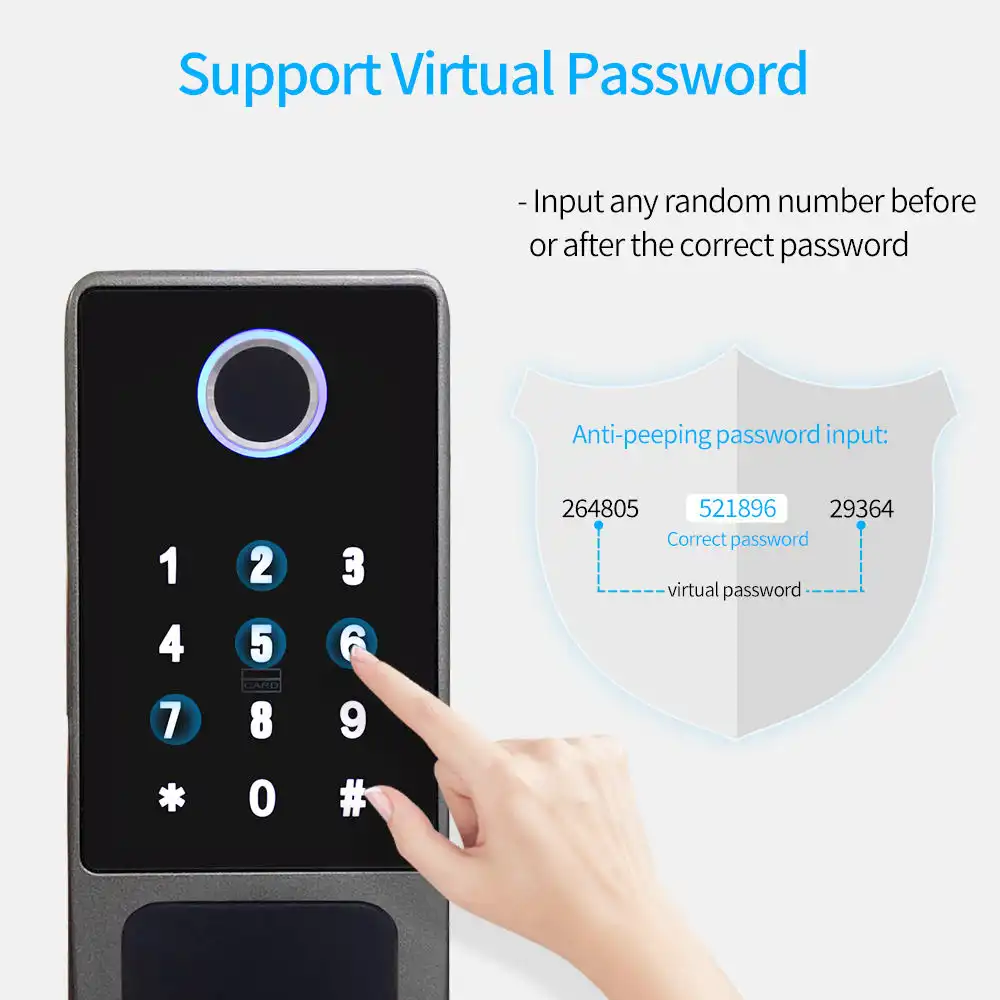 Bảo mật cao: mật khẩu ảo chống nhìn trộm, báo động khi bị cạy phá hoặc nhập sai nhiều lần.